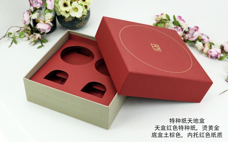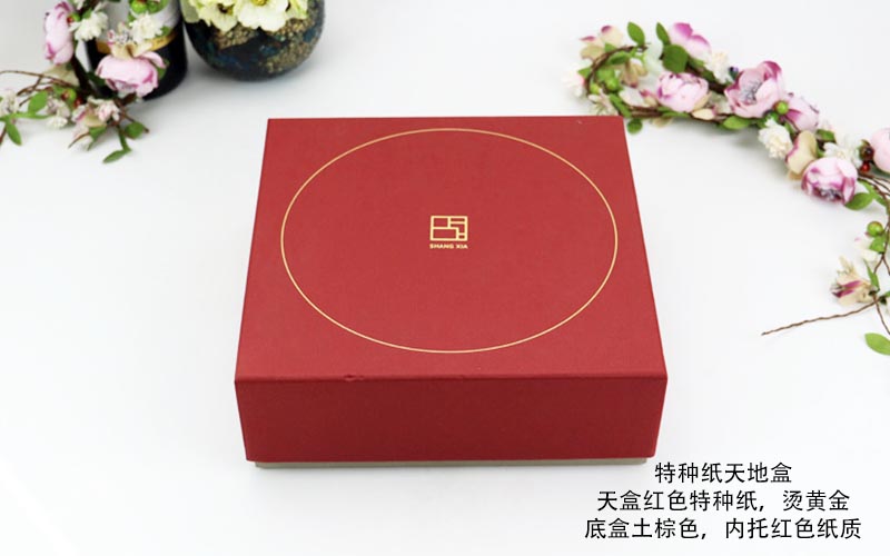 1. 材質:上盒用紅(hóng)色特種紙,紙張特别有手感燙金香槟金色下盒爲特黃色珠光紙,盒子規(guī)定的内托是紙質,盒型爲天地盒整款包裝盒都是手工制作