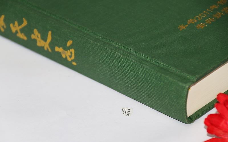 1.材質:外殼用綠色綢布表面燙金文字,裱1500G雙灰闆圓形書籍,内頁用80G道林紙雙面單色印刷,鎖線精裝做成品,頁數比較多做工耗時