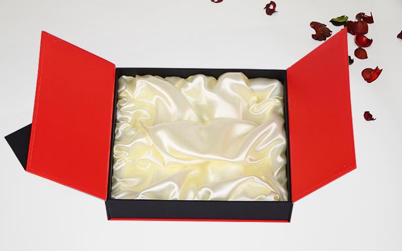 1.材質:盒子面紙用用157G銅版紙單面彩色印刷,單面啞膜文字LOGO燙銀,裱1500G雙灰闆盒子開口的地方镂空,内托珍珠棉裱一層銀白色綢布,内盒用黑色特種紙裱1500G,盒子爲雙開口禮品盒,整款盒子都是手工制作。