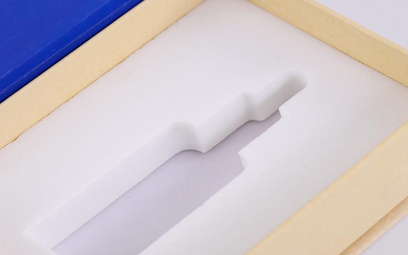 1.材質:面紙用157G銅版紙彩色印刷,單面啞膜,燙金,裱1500G雙灰闆,内盒也用一樣的材質,内托用白色EVA植絨開V槽,固定産品,整款盒子機械化制作成品。