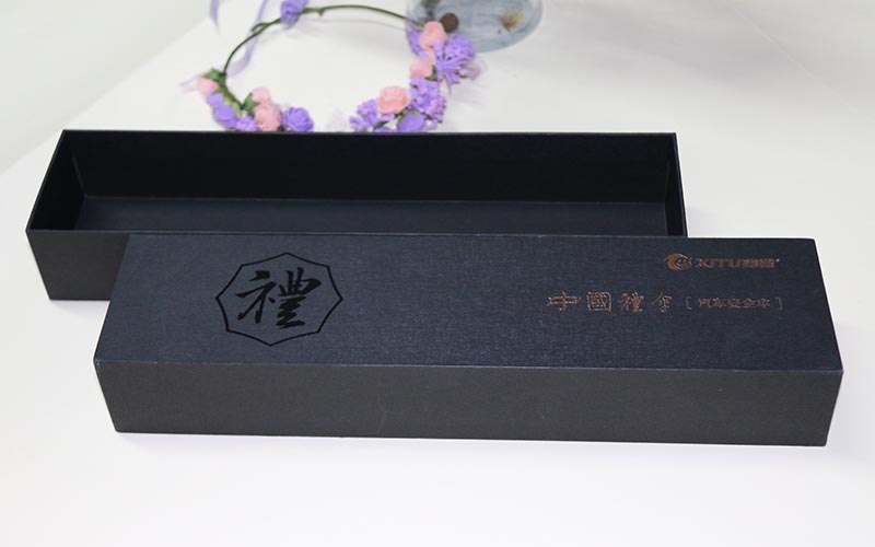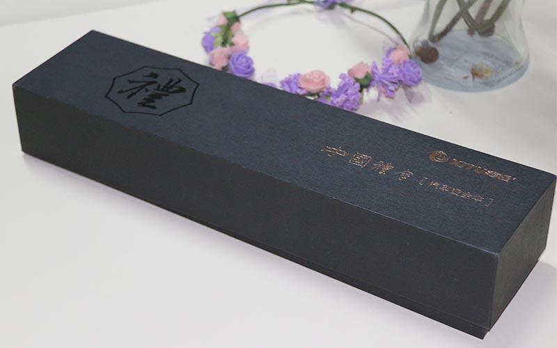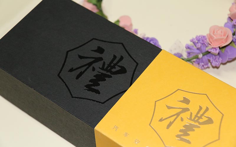 1.材質:禮品包裝盒定制外盒封套採用黃色特種紙表面燙啞金,外盒採用180G特種進口黑色牛卡紙(上面自帶小細紋路),盒子不用印刷彩色,盒子表面局部UV,文字燙啞金,盒子爲天地盒,盒子内部放拉斯草黑色拉斯草更顯高檔 。